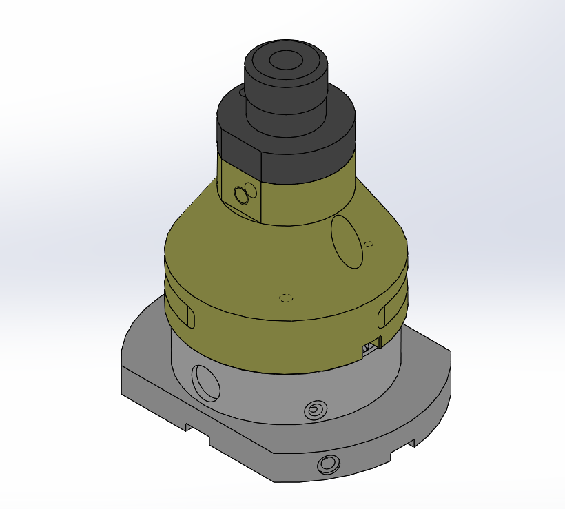 Eingesetzt wird die Spannzangenaufnahme auf einer CNC 5-Achsmaschine. Die Aufnahme kann Sekundenschnell über ein Nullpunktspannsystem mit dem Bearbeitungsschraubstock getauscht werden. Wertvolle Rüst- und Nebenzeiten werden somit eingespart. Zusätzlich wird eine Bearbeitung von Rundmaterialien unterschiedlicher Durchmessern ermöglicht.